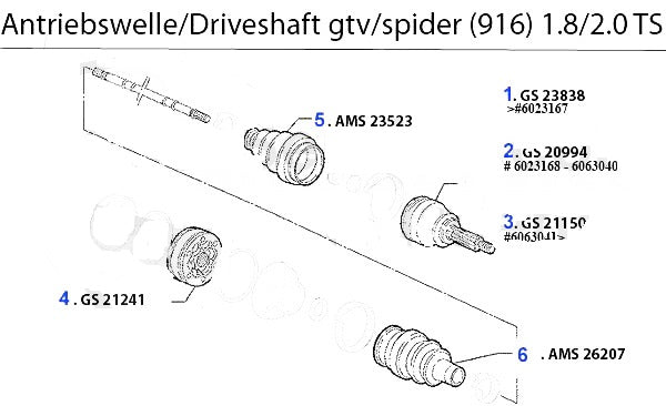 Outer cv jont for Alfa Romeo GTV/Spider (916) TS models. #3 in corresponding diagram.