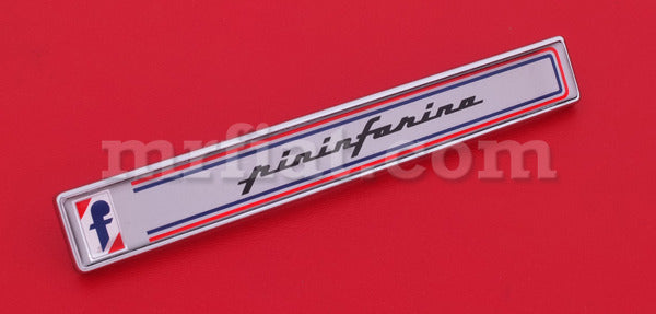 Chrome 142x20 mm emblem for Pininfarina models of 1980. Made in Italy
