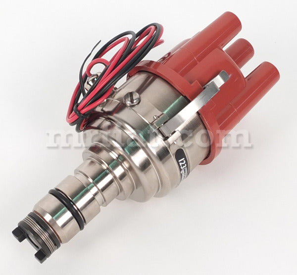 Complete electronic distributor for all Porsche 356 C models without vacuum advance.The ignition-system in a classic car is often the source of many problems. After many years the mechanical system is worn, and replacement of the points with an optical or magnetical setup, does not make up for wear in the advance-mechanism, the shaft and bearings etc.Well, 123ignition is different. It comes in a housing, that exactly looks like its mechanical counterpart on the outside, but that houses a lot of high-tech on the inside.A 123ignition keeps the looks under the bonnet 'original', but makes the engine spin like a Japanese sewing-machineMoreover : you don't have to sacrifice your mechanical distributor.