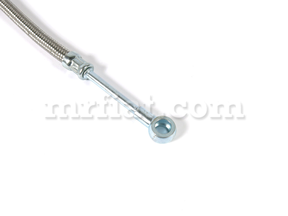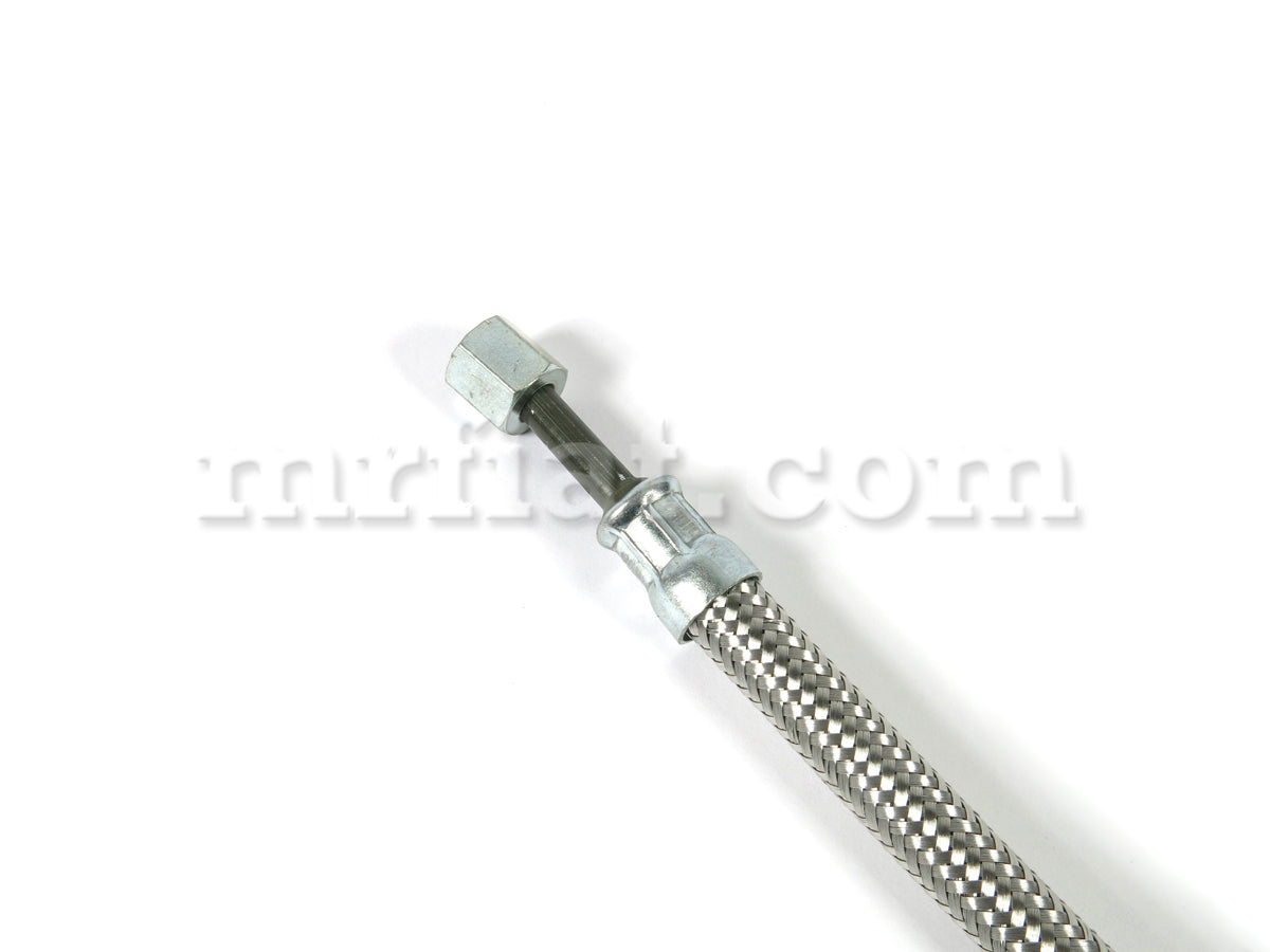 Inlet oil line with sleeve and nut, original braided steel Porsche 356C models from 1964-65.