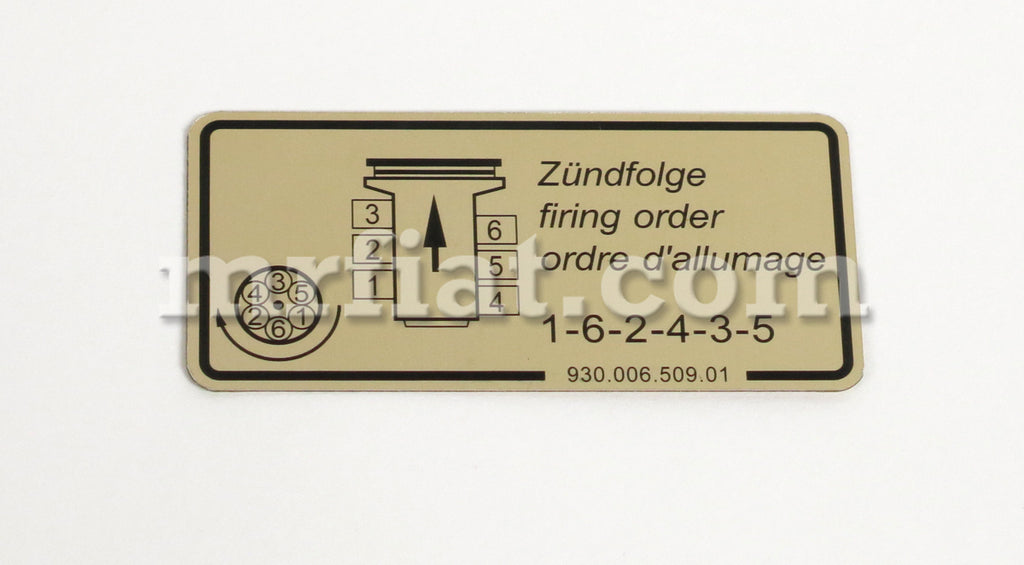 Firing order sticker Porsche 911 Carrera and 911/930 models from 1984-89.