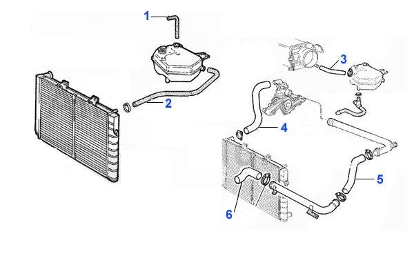 Radiator hose connect centre hose to radiator hose for Alfa Romeo 164 models. #5 in corresponding diagram.
