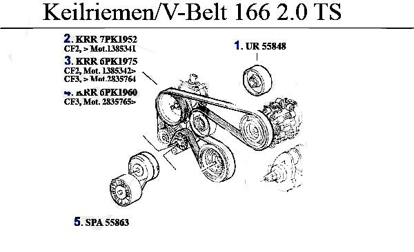 V-ribbed belt for Alfa Romeo 166 models. #4 in corresponding diagram.