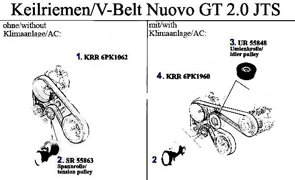 Ribbed belt for Alfa Romeo Nuovo GT models. #4 in corresponding diagram.