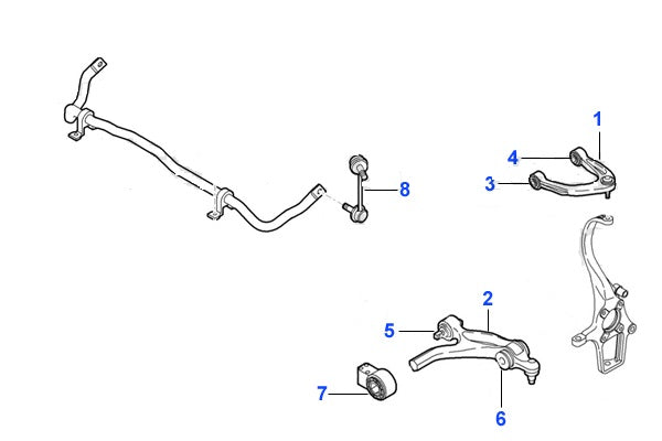 Right lower arm for Alfa Romeo 159 models. #2 in corresponding diagram.