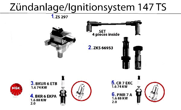 2 candles are required per cylinder spark plug for Alfa Romeo 147 1.6cc 16V TS models. #5 in corresponding diagram.