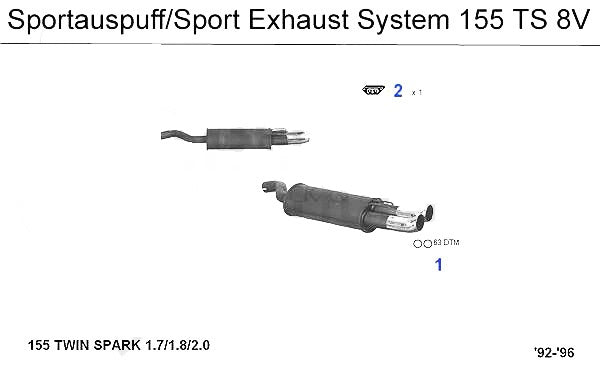 End pipes chromed sport end muffler155 with engine 1.7cc/2.0cc/2.5cc V6 for Alfa Romeo 155 1.7cc/2.0cc/2.5cc V6 models. #1 in corresponding diagram.