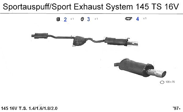 Sports exhaust for Alfa Romeo 145 1.4cc/2.0cc 16v TS models. #1 in corresponding diagram.