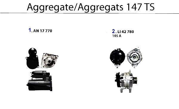 Starter for Alfa Romeo 147 1.6cc/2.0cc 16V TS models. #1 in corresponding diagram.