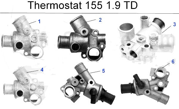 Housing thermostat without air conditioning thermostat for Alfa Romeo 155 1.9cc TD models. #5 in corresponding diagram.