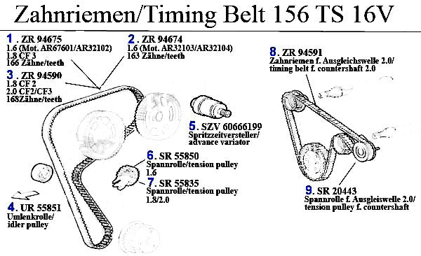 High temperature version timing belt 130sldd150h for Alfa Romeo 156 2.0cc TS 16v models. #8 in corresponding diagram.