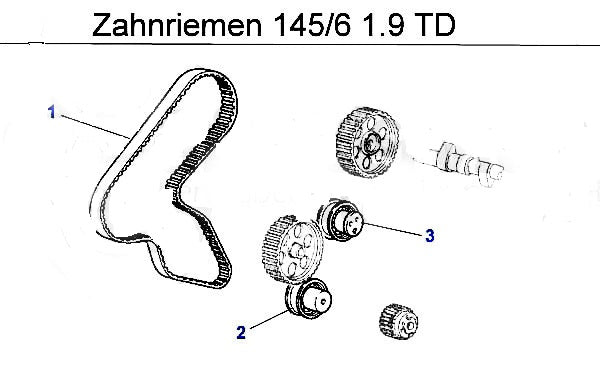 Camshaft timing belt for Alfa Romeo 145/6 1.9cc TD models. #1 in corresponding diagram.