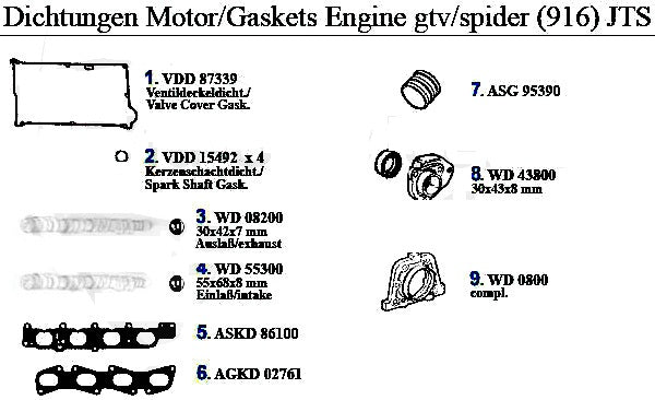 Valve cover seal for Alfa Romeo GTV/Spider (916) models. #1 in corresponding diagram.