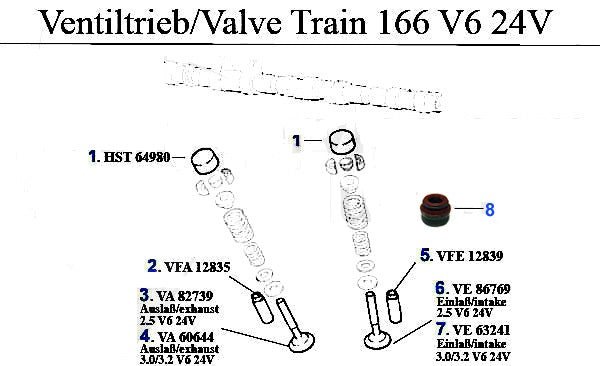 Valve tappet for Alfa Romeo 166 2.5cc 24v models. #1 in corresponding diagram.