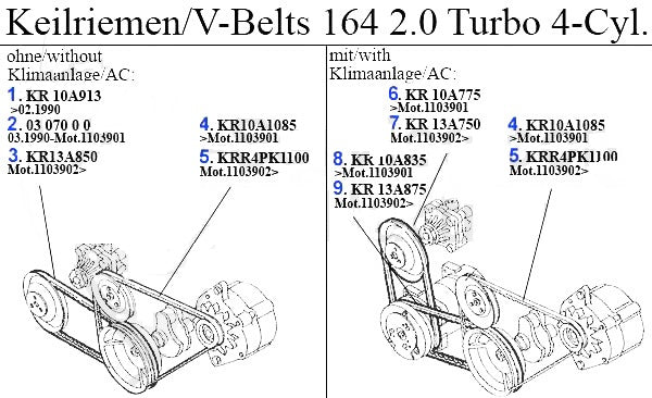 V-belt a/c compressor 12.5mm x 850mm for Alfa Romeo 164 models. #3 in corresponding diagram.