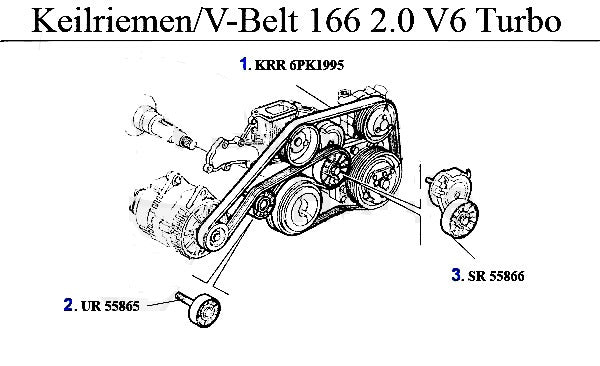 V-ribbed belt for Alfa Romeo 166 models. #1 in corresponding diagram.