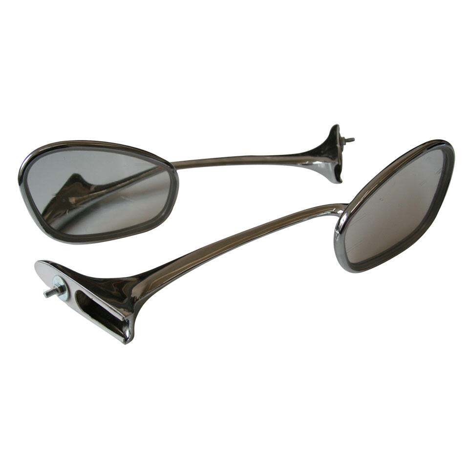 Additional Info: In the fifties many smaller factories produced awesome accessories for the beetle. Albert for sure was one of those manufacturers and came up with these ultra slick looking swan neck mirrors. Swan necks are mounted in the front of the chrome trim on the front inner fenders. These stylish rear view mirrors do add a big aerodynamic look to your car and are a perfect fit accessory for each beetle with wide mouldings. MrFiat stepped up and added high quality reproductions from these mirrors in to our program for you.