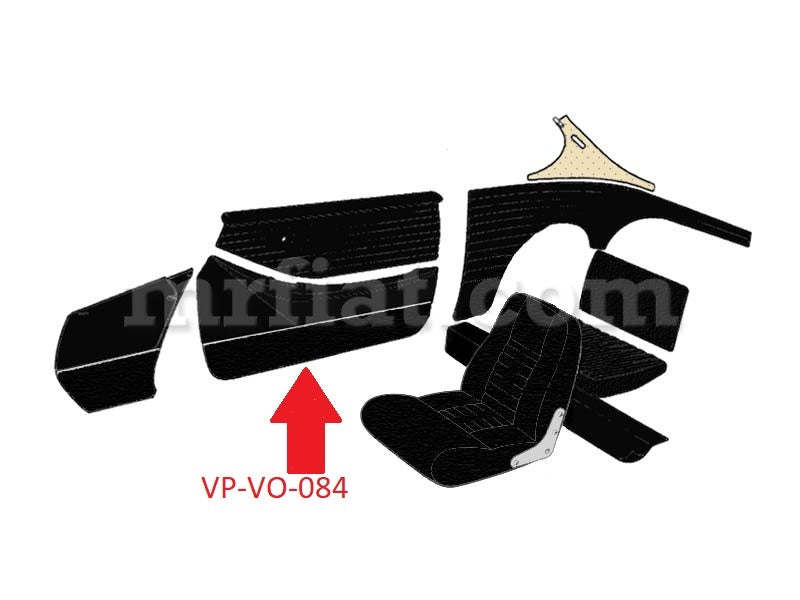 Left and right-hand side set of lower black door panels for Volvo P1800 models from 1963. These were mounted originally on cars with upholstery codes 306-219. Please provide your chassis number and interior code when placing your order, these ensure a proper fit. Items are custom-made and are nonrefundable. Products are artisanally made in Sweden.