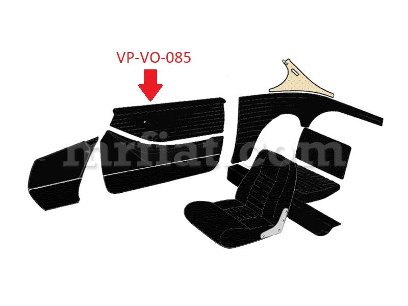 Left and right-hand side set of upper black door panels for Volvo P1800 models from 1963. These were mounted originally on cars with upholstery codes 306-219. Please provide your chassis number and interior code when placing your order, these ensure a proper fit. Items are custom-made and are nonrefundable. Products are artisanally made in Sweden.